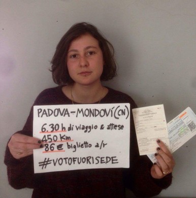 “Il diritto di voto è un diritto costituzionalmente riconosciuto, eppure migliaia di studenti universitari oggi non lo hanno potuto esercitare, oppure lo hanno fatto affrontando importanti spese economiche. Per questo, nel giorno del voto, abbiamo voluto denunciare il problema con una fotopetizione”. Non usa mezzi termini Elisa Marchetti, coordinatrice nazionale dell’Unione degli Universitari per denunciare le condizioni degli studenti fuorisede per i quali, di fatto, l’unica condizione per esercitare il diritto di voto è spendere molti soldi che non tutti possono permettersi. E’ vero che esistono dei rimborsi e delle tariffe agevolate, ma quando i chilometri da percorrere diventano molti, anche la tariffa agevolata ha un costo insostenibile, specie per chi è costretto a prendere l’aereo.