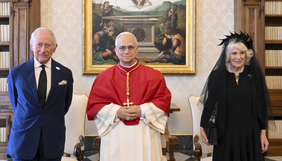 Le Loro Maestà il Re Carlo III d'Inghilterra con la Regina Camilla incontrano Papa Leone XIV, Città del Vaticano, 23 ottobre 2025 ANSA/ Vatican Media +++ UFFICIO STAMPA +++ FOTO NON IN VENDITA - DA USARE SOLO PER FINI GIORNALISTICI +++ NPK +++ ----- An handout picture, provided by Vatican media, shows Their Majesties King Charles III of England and Queen Camilla meeting Pope Leo XIV, Vatican City, 23 October 2025. ANSA/Vatican Media handout handout +++ ANSA PROVIDES ACCESS TO THIS HANDOUT PHOTO TO BE USED SOLELY TO ILLUSTRATE NEWS REPORTING OR COMMENTARY ON THE FACTS OR EVENTS DEPICTED IN THIS IMAGE - NO ARCHIVING - NO LICENSING - NPK +++