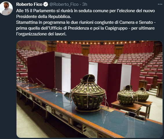 Oggi il quorum dei 2/3 per far scattare l’elezione del presidente della Repubblica è di 672 voti (i 2/3 dei componenti del Parlamento in seduta integrato dai delegati delle regioni). Il numero tiene conto della morte del deputato Vincenzo Fasano. Il successore dovrebbe essere Maria Rosa Sessa, prima dei non eletti alla Camera dei Deputati nella lista di Forza Italia alle elezioni del 2018. Un nome considerato vicino a Mara Carfagna.