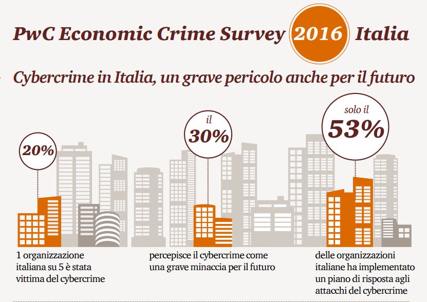 I dati. Quanto costa ad un’azienda un cyber attacco? Il Ponemon Institute, nella sua ricerca annuale “Cost of a Data Breach”, ha stimato per il 2015 un costo medio di 158 dollari per ogni furto o smarrimento di informazioni riservate. Ogni azienda nel 2015 ha speso in media 4 milioni di euro a causa degli attacchi: il 29% in più rispetto a soli due anni prima. Secondo il PwC Economic Crime Survey 2016 il 34% delle aziende mondiali si aspetta di essere vittima di frodi informatiche entro due anni. E in Italia? Lo stesso studio spiega che un’azienda italiana su cinque è vittima di attacchi, ma solo il 53% di esse ha un piano di prevenzione. Recentemente il Dipartimento di Sicurezza del ministero degli Interni ha fornito al Sole 24 Ore una tabella interattiva con le statistiche provinciali e regionali sull’attività delittuosa nel 2015. Selezionando “truffe e frodi informatiche” si può analizzare la percentuale di denunce scattate durante il 2015. Ad investire denaro non è soltanto chi si difende: anche i pirati digitali impiegano risorse per sviluppare nuovi malware. Kaspersky Lab ha fornito una lista di quelli più diffusi in Italia.