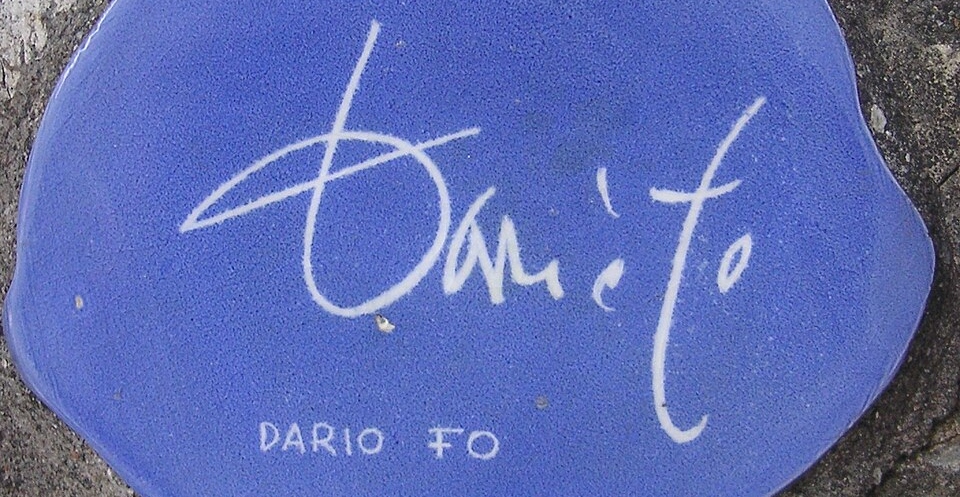 Piastrella autografata da Dario Fo sul muretto di Alassio | Niccolò Caranti, CC BY-SA 3.0 via Wikimedia Commons
