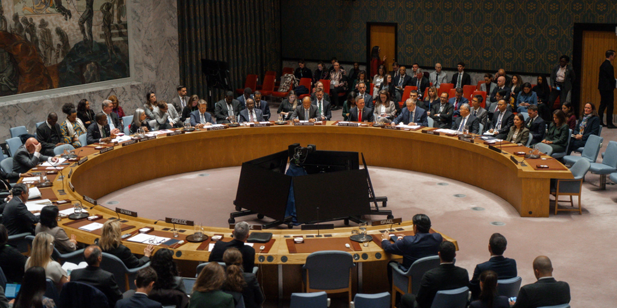 I membri del Consiglio di sicurezza delle Nazioni Unite siedono a una tavola rotonda nella sala del Consiglio di sicurezza presso la sede delle Nazioni Unite a New York, 17 novembre 2025 | Foto Ansa