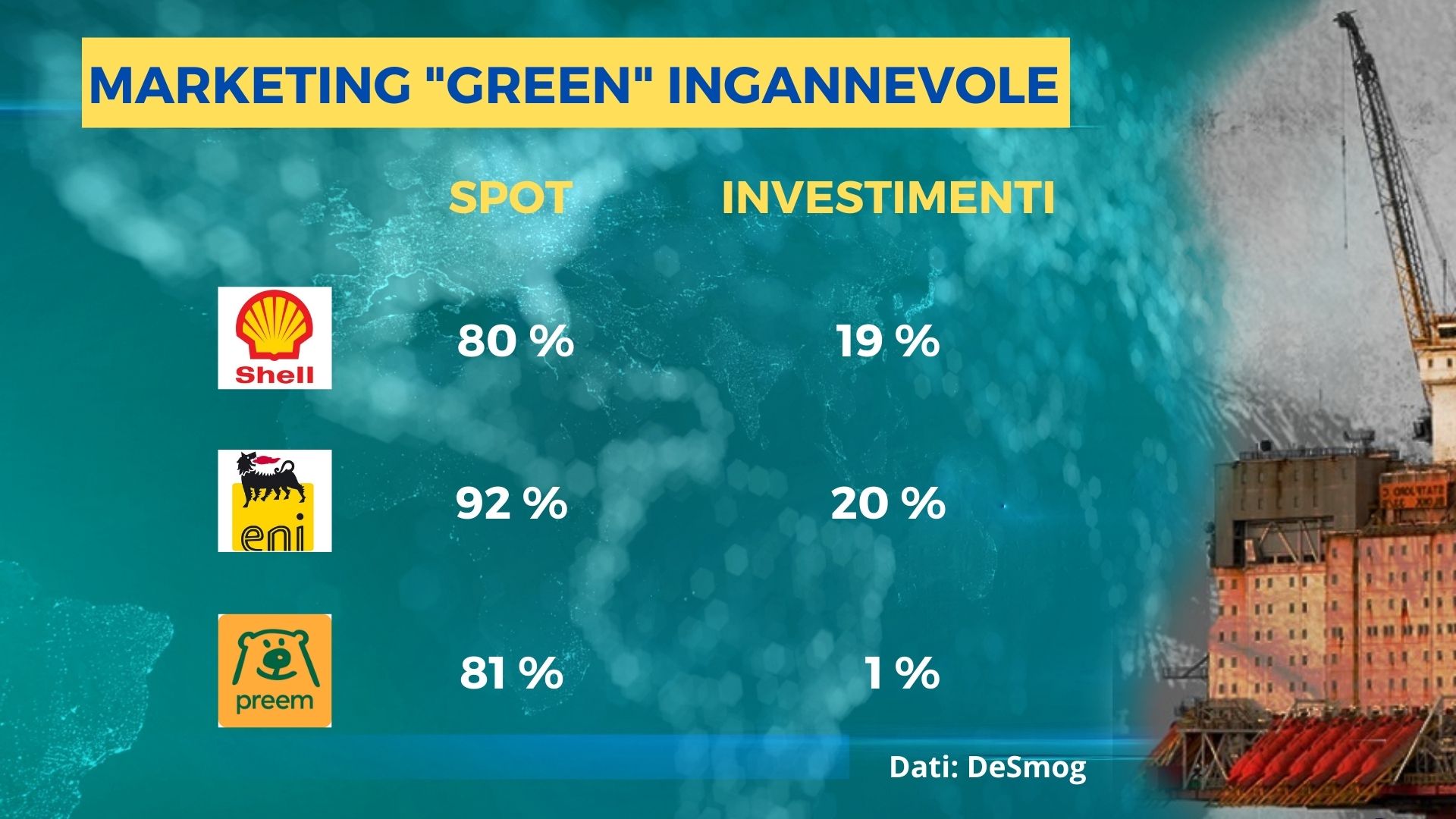 Sebbene il fenomeno si possa riscontrare in tutti i settori, in alcuni comparti l’ecologismo “di facciata” è più diffuso e potenzialmente più dannoso. Il gruppo di ricerca britannico DeSmog ha analizzato 3.034 annunci pubblicitari pubblicati tra dicembre 2019 e aprile 2021 su Twitter, Facebook, Instagram e Youtube da sei società europee leader nel commercio dei combustibili fossili, industria al centro del dibattito sul clima. Il 63% è stato classificato come greenwashing, e per ogni azienda le pubblicità in tema di sostenibilità ambientale sono in media il 50%, mentre solo il 18% del loro portfolio è costituito da attività realmente a favore del clima. Tra i colossi energetici presi in esame, Shell è la multinazionale per cui è stata riscontrata la maggiore discrepanza tra pubblicità “verdi” e investimenti in combustibili fossili: l’80% degli annunci pubblicitari promuove iniziative a sostegno dell’ambiente, quando in realtà l’81% degli investimenti aziendali sono destinati a petrolio e gas.