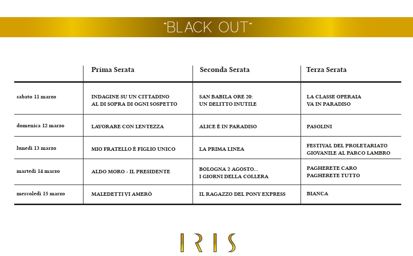 Gli anni Settanta sono stati anni emblematici. In particolare, il 1977 ha segnato un punto di svolta nella cultura italiana e, per questo motivo, Iris celebra il quarantennale con la rassegna “Black Out”.