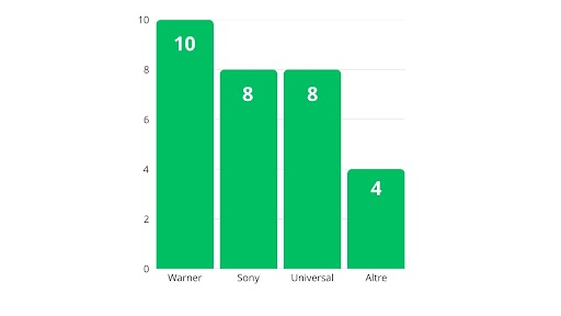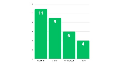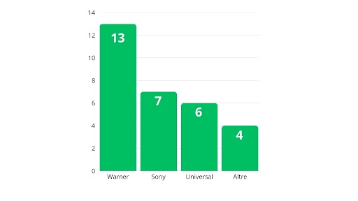 Numero di cantanti in gara divisi per casa discografica a Sanremo 2024