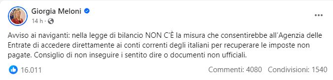 La Lega si oppone anche alla norma che rafforzerebbe la possibilità di pignorare i conti correnti degli evasori. In particolare, la bozza prevede la possibilità di accedere direttamente, tramite la banca, al conto corrente del contribuente su cui effettuare il prelievo degli importi. Ma per la Lega si tratterebbe di “un’incursione nelle tasche degli italiani”, e il vice segretario Andrea Crippa ribadisce che “andare a fare i prelievi forzosi nei conti correnti è contrario ai valori del partito”. Palazzo Chigi ha risposto alle polemiche definendo “priva di fondamento” la notizia secondo cui l’Agenzia delle Entrate potrebbe accedere ai conti degli italiani, specificando che la volontà del governo è “efficientare strumenti esistenti nel rispetto dei diritti del contribuente e della sua privacy”. La stessa premier Giorgia Meloni avrebbe commentato l’ipotesi con un eloquente “non se ne parla”, confermato anche dal viceministro all’ economia Maurizio Leo, che ha assicurato che “non c’è nessun pignoramento nella manovra”.