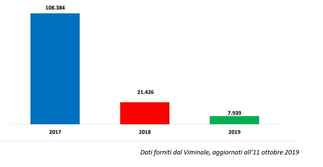 Al di là delle normative italiane e degli accordi europei, analizzando nello specifico i numeri che riguardano gli sbarchi sulle coste del nostro Paese, ci accorgiamo che, dopo il picco raggiunto nel 2017 con l’arrivo di 108mila migranti, si è registrato un calo del 92% nel 2018 con 21mila sbarchi, trend confermato anche nel 2019. All’11 ottobre sono 8mila gli arrivi stimati dal ministero dell’Interno.