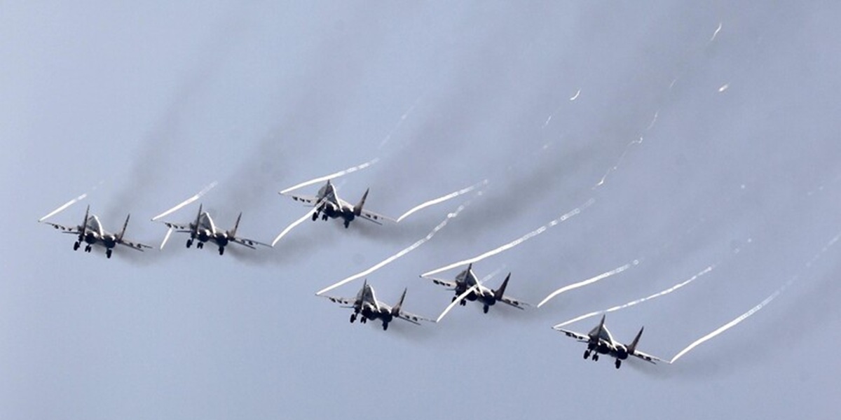 MiG 29 jet fighters del gruppo acrobatico russo Strizhi | Foto Ansa