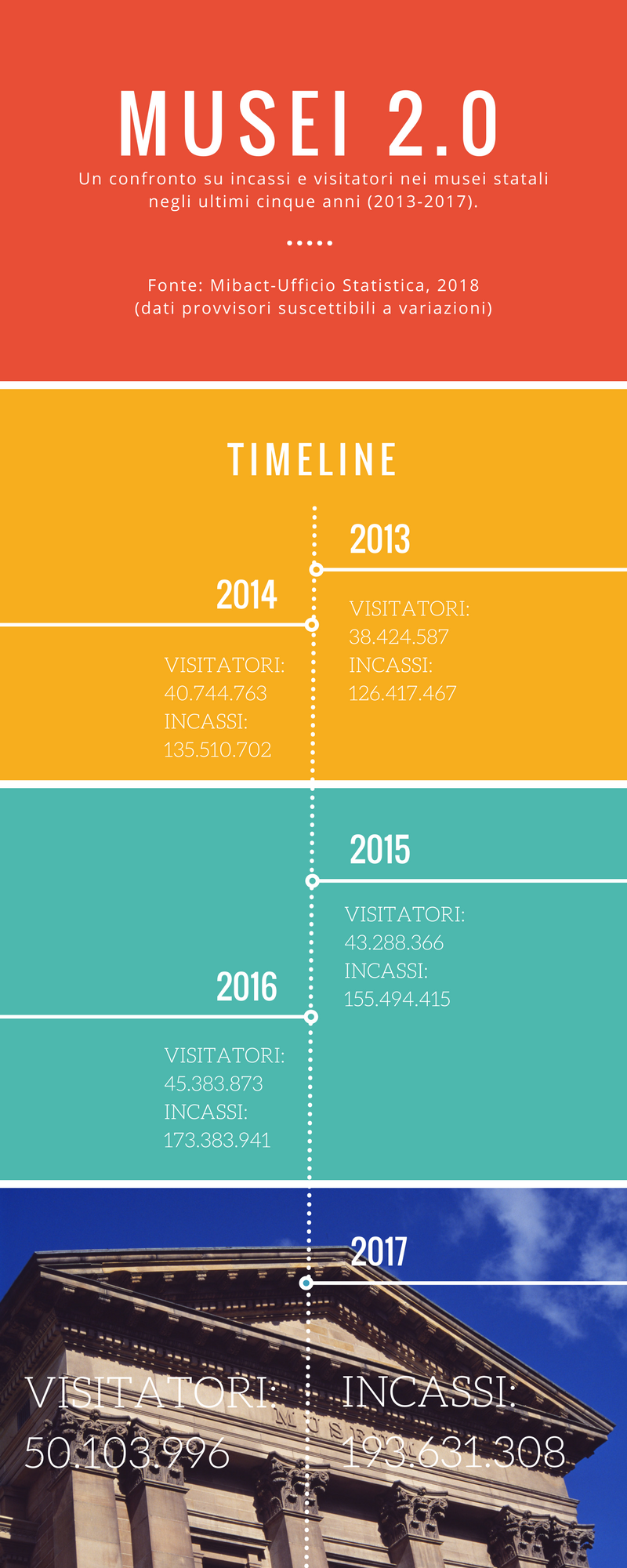 I NUOVI DIRETTORI. Molti i nomi noti: in primis quello di James Bradburne, nuovo direttore anglo-canadese della Pinacoteca di Brera, che ha dato al suo museo una svolta decisamente modaiola, con eventi a tema e copertura social, facendo registrare un sostanzioso aumento dei visitatori (345 mila nel 2017). Lo scorso 13 novembre, alla presenza del ministro, si è svolto a Roma il primo summit di confronto sulla legge Franceschini. Erano presenti tutti i nuovi direttori dei musei autonomi, sono stati celebrati numeri record: 45,5 milioni di visitatori e 175 milioni di euro di incassi. Cifre che dovrebbero testimoniare “una radicale inversione di tendenza”, secondo le parole del ministro. Ogni struttura ha ricevuto un nuovo imprinting, volto a stuzzicare la curiosità degli avventori e a creare una connessione “tra la sale e le strade”. Agli Uffizi, Eike Schmidt ha deciso di affittare alcune delle sale per feste di compleanno; il Museo Archeologico di Napoli si promuove tramite un’app videogioco ambientata al suo interno. Si chiama “Father and Son” ed ha collezionato 900 mila download. Alla Galleria Nazionale d’arte Moderna di Roma la mostra “Time is out of joint” è costata alla direttrice Cristina Collu 280 mila euro. Definita come “esordio rinnovato” della GNAM, questa esposizione lavora con gli spazi, producendo un vero e proprio spettacolo fisico per chi guarda. Un guadagno per tutti, sembrerebbe.