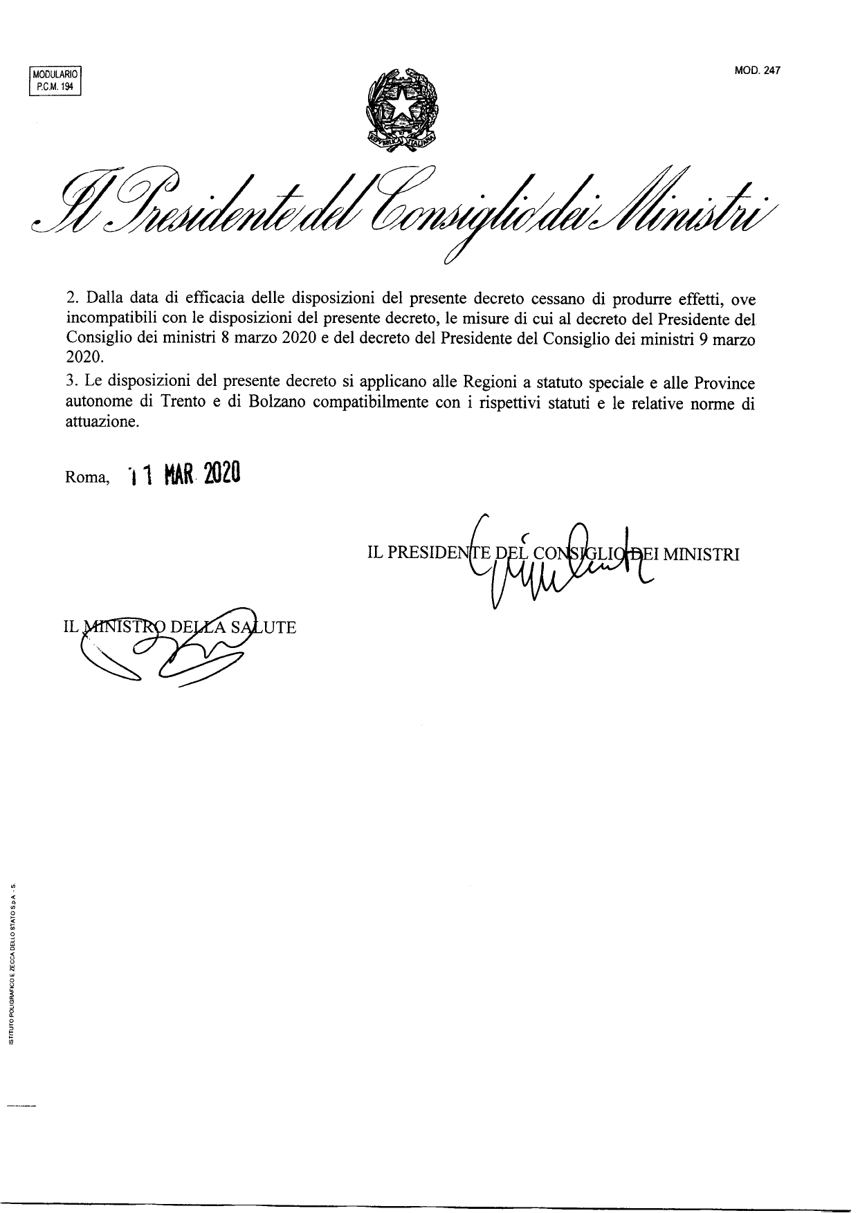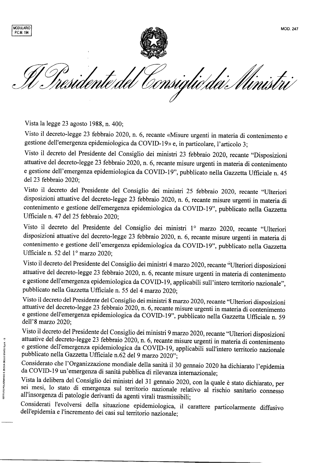 La situazione Coronavirus in Italia continua a peggiorare e il governo ha deciso di inasprire le misure di contenimento che saranno in vigore in tutta Italia a partire da oggi e fino al prossimo 25 marzo. Salvo proroghe. Il presidente del Consiglio Giuseppe Conte ha annunciato anche la nomina di Domenico Arucuri – numero uno di Invitalia – come commissario delegato sui servizi sanitari. Figura che affiancherà il capo della Protezione Civile Angelo Borrelli.