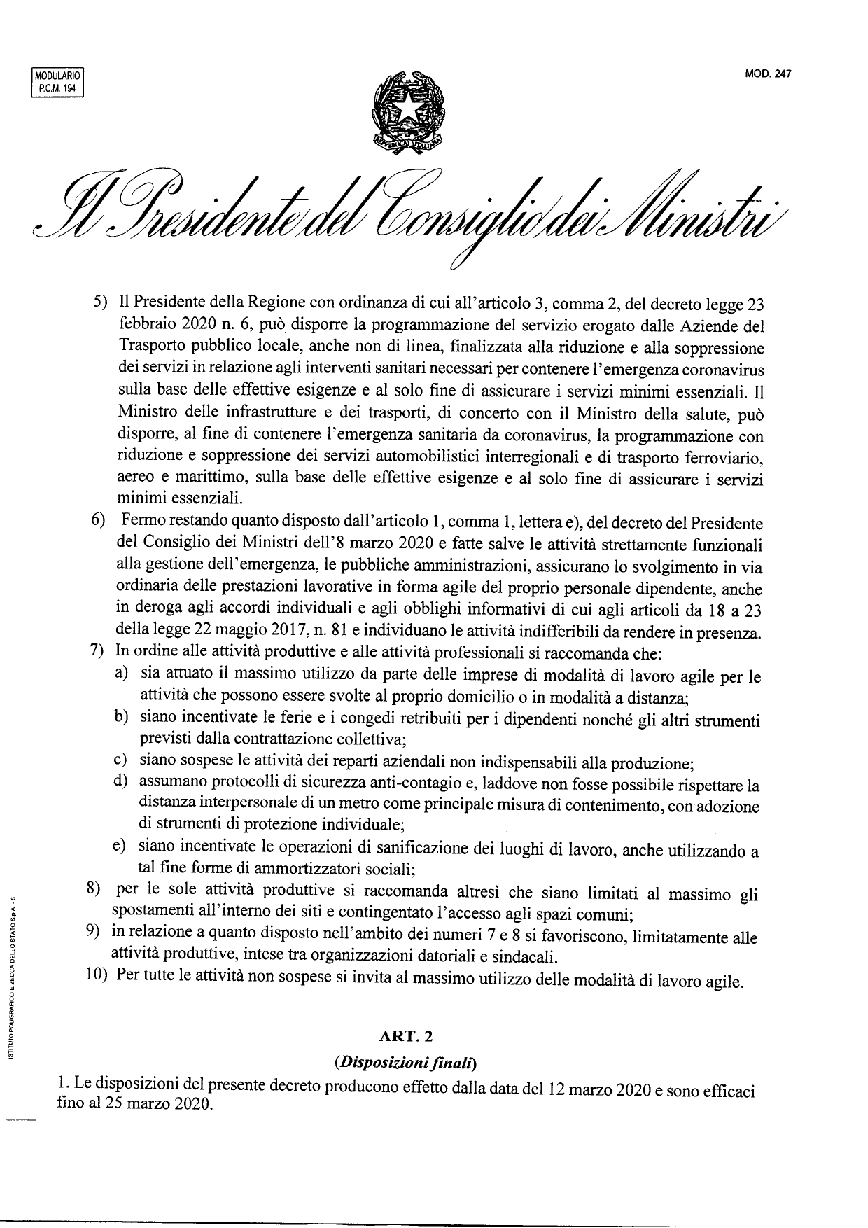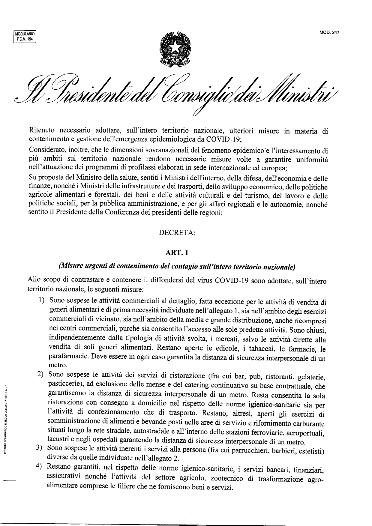 Il testo del decreto: