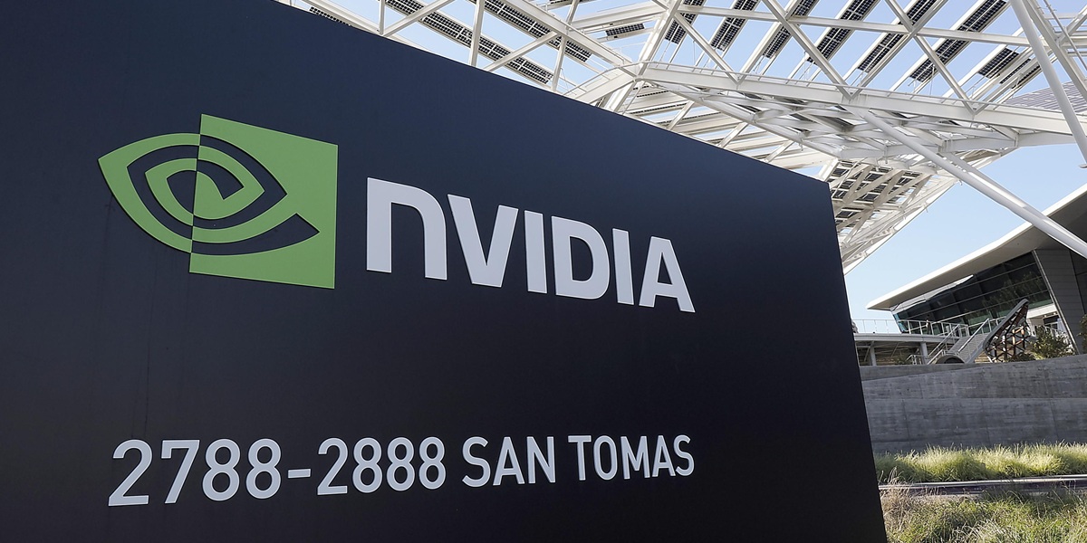 Il logo Nvidia nella sede centrale di Santa Clara, Stati Uniti | Foto Ansa