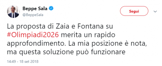 La situazione era già precipitata nel pomeriggio di ieri, quando il sindaco di Milano Beppe Sala aveva chiesto, tramite una lettera inviata allo stesso Giorgetti, che alla città del Duomo fosse assegnata la regia dell’evento: “Milano ritiene di avere le capacità organizzative, come dimostrato da Expo2015, per gestire direttamente e pienamente il progetto olimpico”, il testo scritto da Sala.