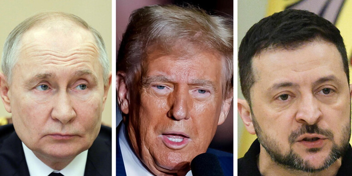 Da sinistra: il presidente della Russia Vladimir Putin, il presidente Usa Donald Trump e il presidente ucraino Voldymyr Zelensky