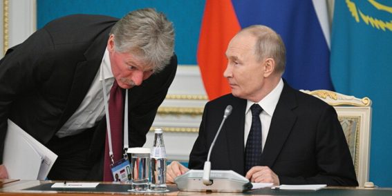 Da sinistra, il portavoce del Presidente della Federazione russa Dmitry Peskov e Putin | Foto Ansa