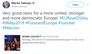 La notizia è stata accolta con giubilo in Europa, dove il tedesco Martin Selmayr, capo gabinetto del presidente Juncker, ha twittato: “Un’ottima notizia per un’Europa più unita, forte e democratica!”. Anche il presidente del Consiglio italiano, Paolo Gentiloni, lo ha definito “un passo avanti per il futuro dell’Europa”.