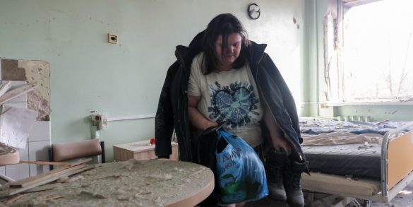 Una donna recupera i propri effetti personali in un reparto danneggiato di un ospedale maternità colpito da un attacco russo a Zaporizhzhia. Secondo il Servizio statale di emergenza ucraino, l’attacco ha provocato almeno sei feriti | Foto Ansa