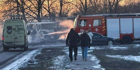 Immagine diffusa dal Servizio statale di emergenza dell’Ucraina che mostra il luogo di un attacco russo contro un autobus civile che trasportava minatori a Ternivka, nel distretto di Pavlohrad, nella regione di Dnipropetrovsk, il 1° febbraio 2026. Secondo le autorità ucraine, un drone russo ha colpito il mezzo provocando almeno 12 morti e sette feriti | Foto Ansa