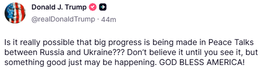 In un criptico post su Truth, il tycoon si dimostra ottimista: “È davvero possibile che si stiano facendo grandi progressi nei colloqui di pace tra Russia e Ucraina? Non crederci finché non lo vedi, ma potrebbe succedere di buono. Dio benedica l’America!”. Ma la guerra, nel frattempo, continua. Tre dei quattro aeroporti internazionali di Mosca sono stati chiusi al traffico dopo un attacco di droni ucraini.
