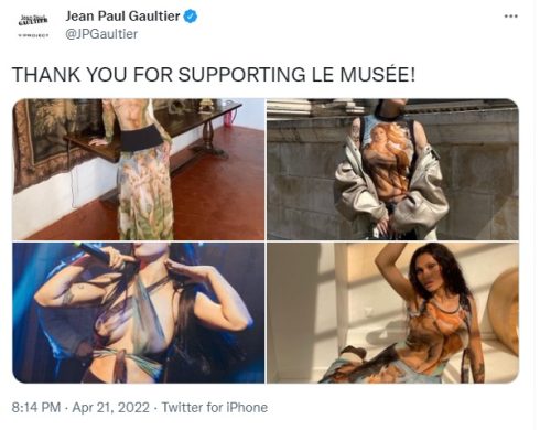 Intanto, da Parigi non è arrivata nessuna reazione ufficiale e sul sito della maison i capi “contestati” sono ancora acquistabili. Nella collezione primavera 2022 Jean Paul Gaultier ha realizzato vari capi di abbigliamento con stampe su grandi capolavori dell’arte mondiale, tra cui anche quella della Gioconda di Leonardo da Vinci.